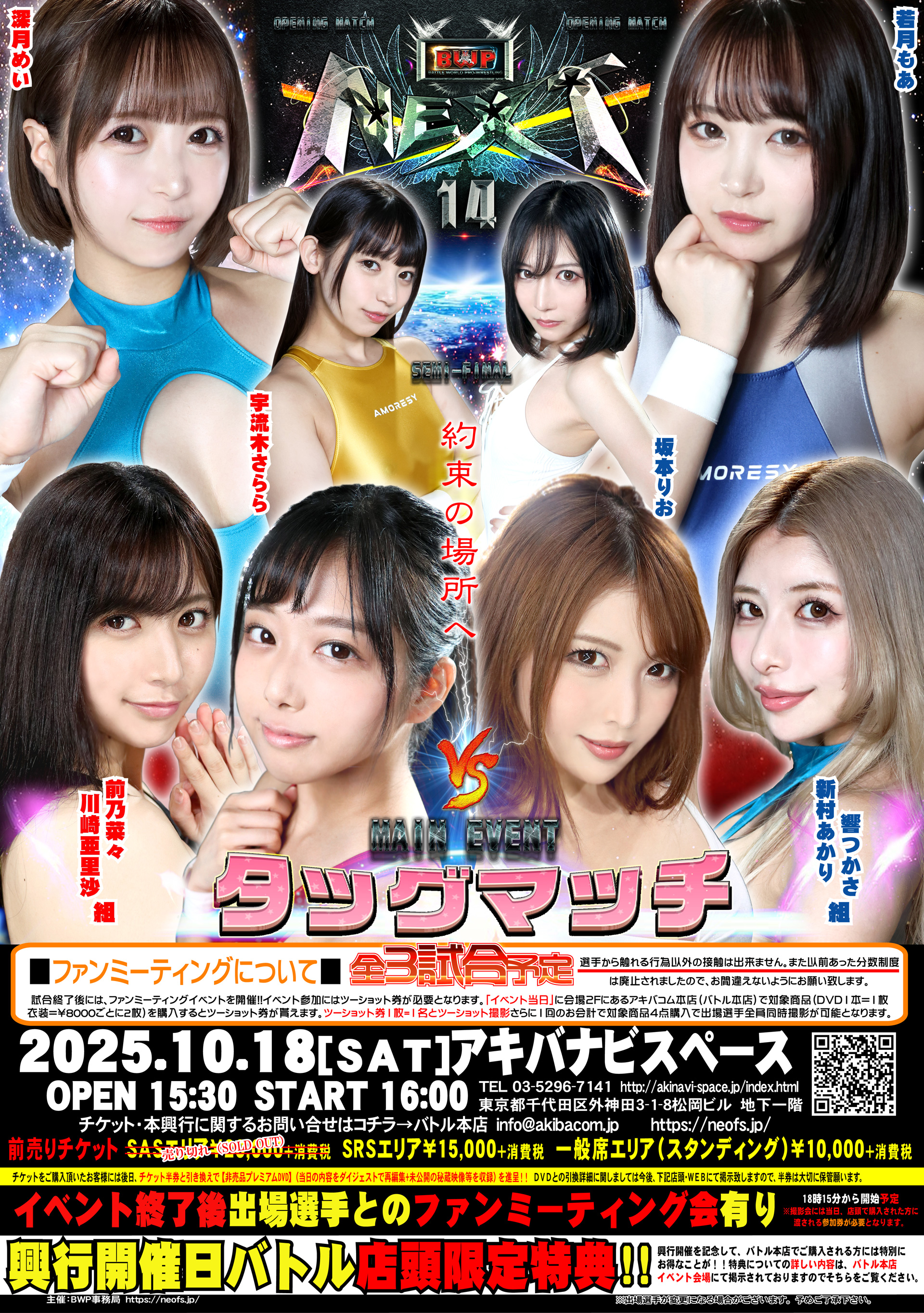 2025.10.18[SAT] BWP NEXT14 興行ポスター&対戦カード発表!年末興行に向けて勢いを増す為の闘い!そして今年3月以来、女王・前乃菜々がLIVEファイトに帰ってくる!2025.09.26
