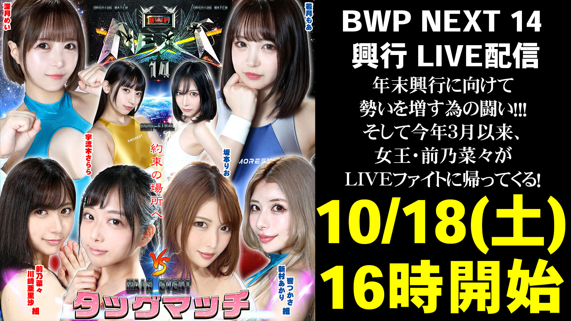 【2025/10/18】BWP NEXT14 興行 LIVE配信2025年10月18日(土)16時より開始!東京・秋葉原 アキバナビスペースで開催されるBWP NEXT14興行をライブ配信!!2025.09.29